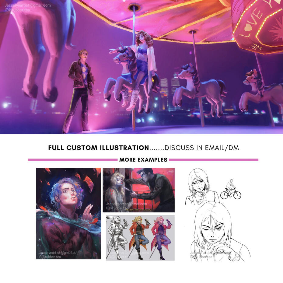 - Full custom illustration are split 15/50/35 (15% upfront, 50% after the sketch is approved and 35% after the artwork is finished.